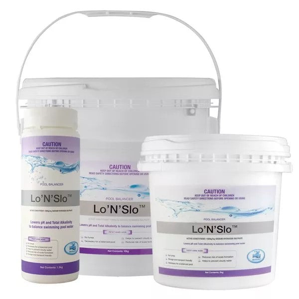 BioGuard Lo’N’Slo is a granular product designed to decrease Total Alkalinity and pH levels in pool water to prevent cloudy water, scale formation, high acid demand and poor chlorine efficiency.